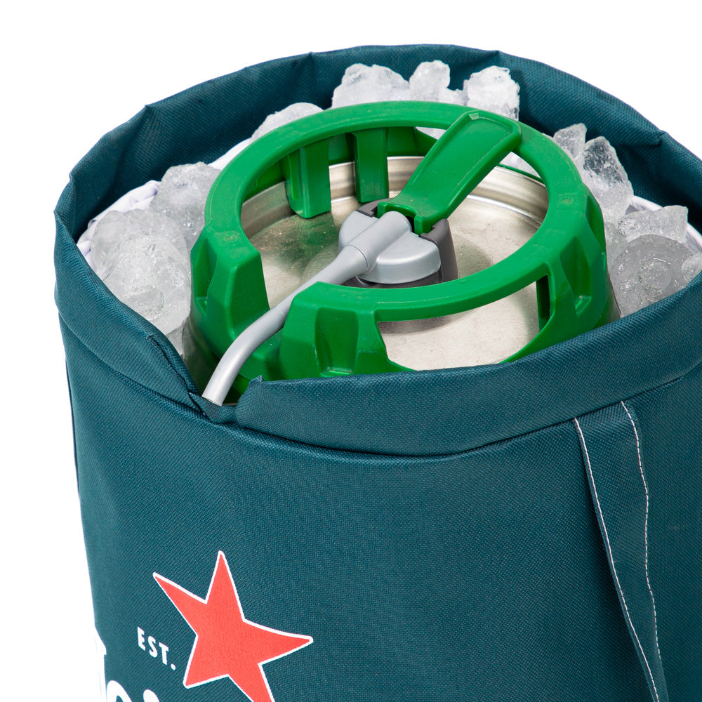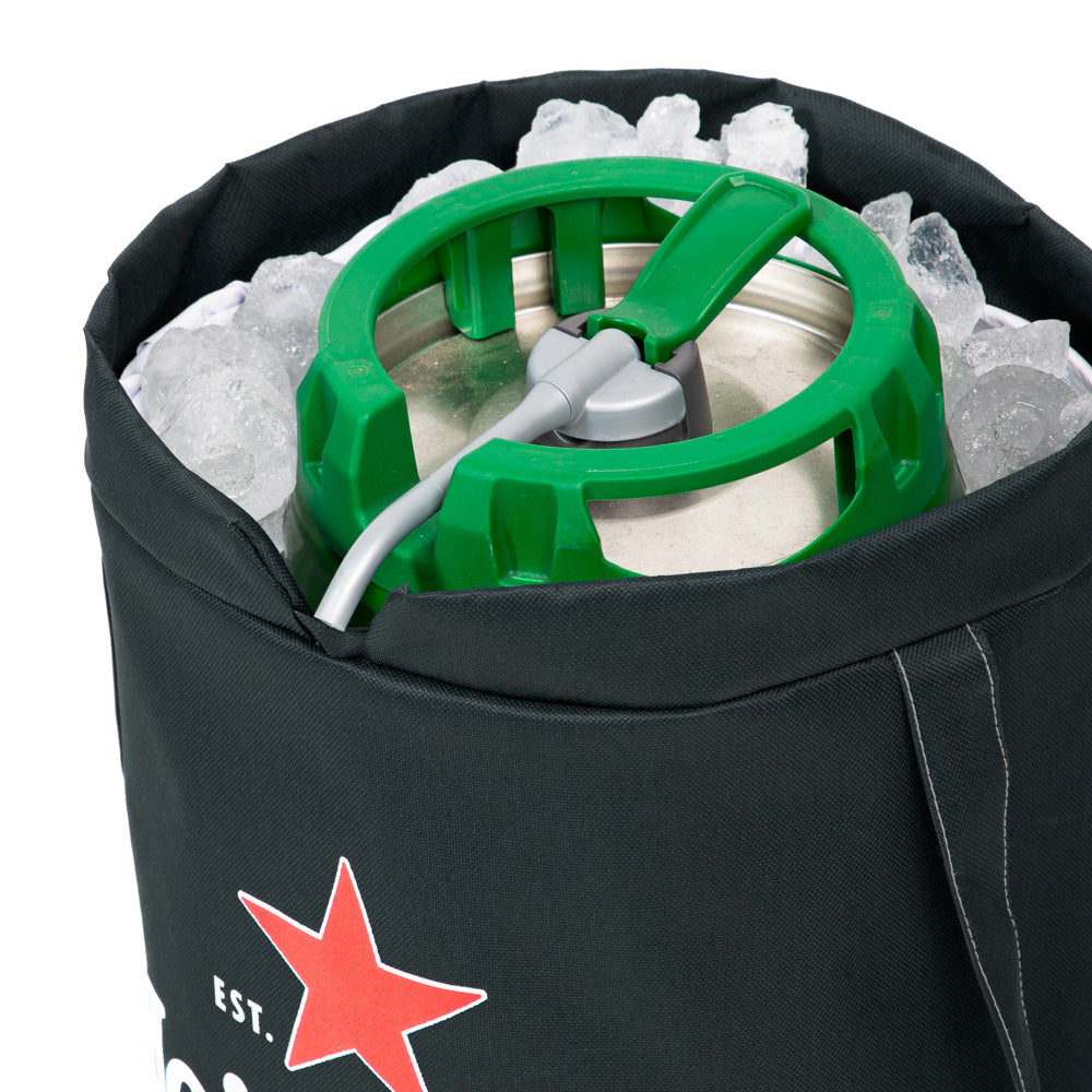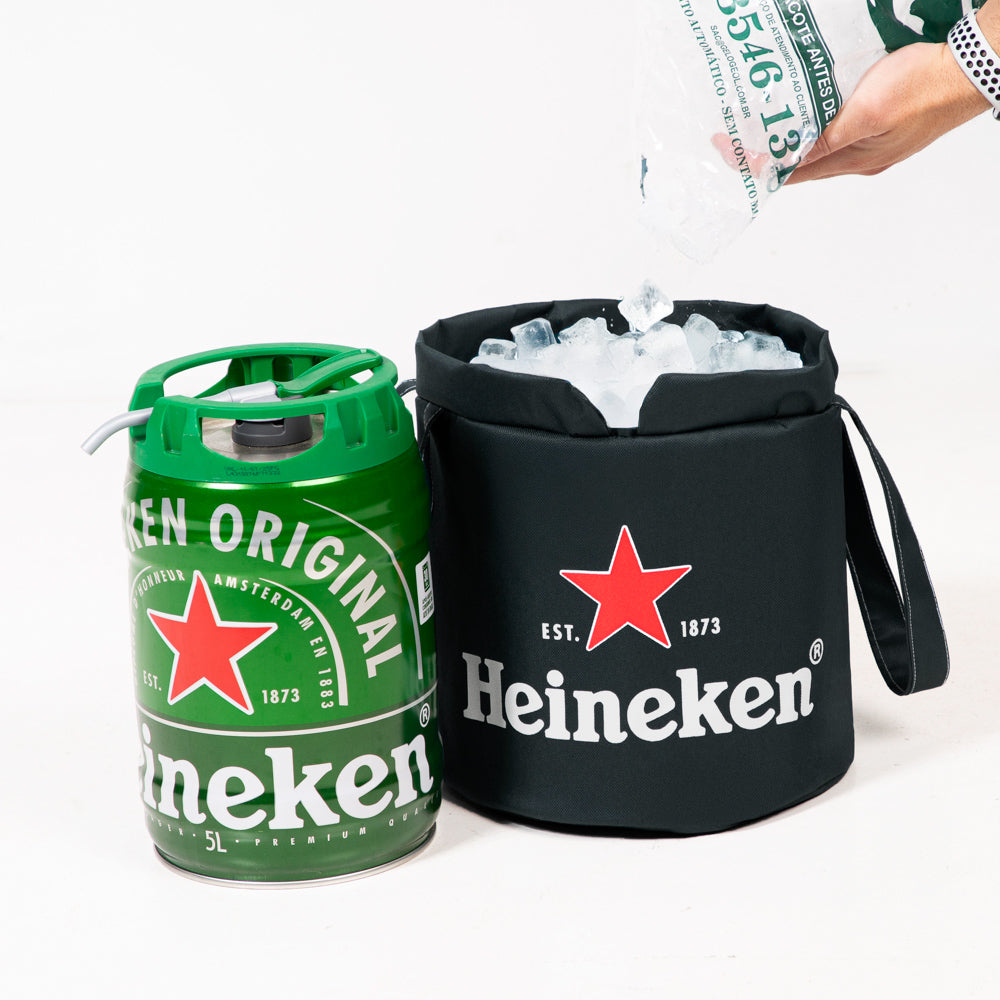 Capacidade: 12 Litros. Ideal para barril Heineken de 5L, comporta também de 6 a 10 garrafas long neck e de 8 a 13 latinhas